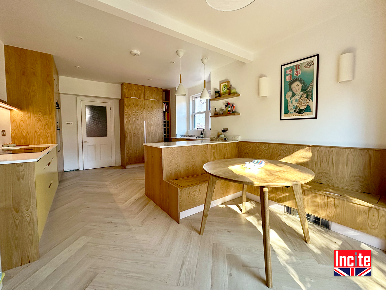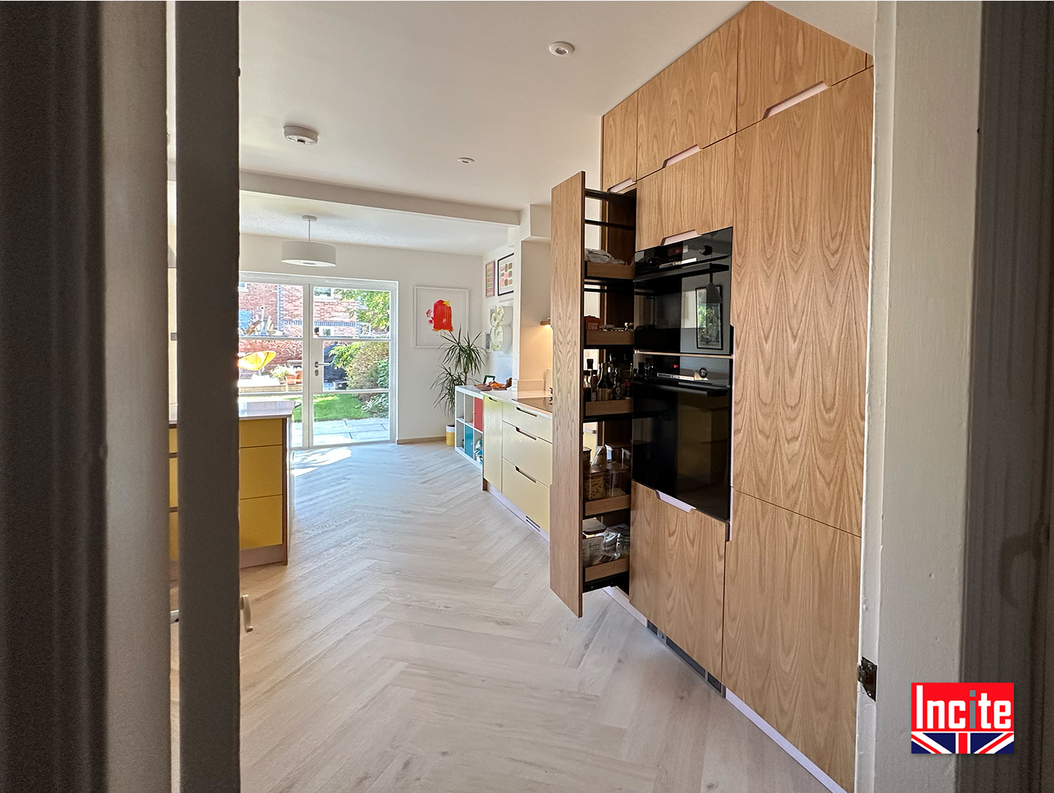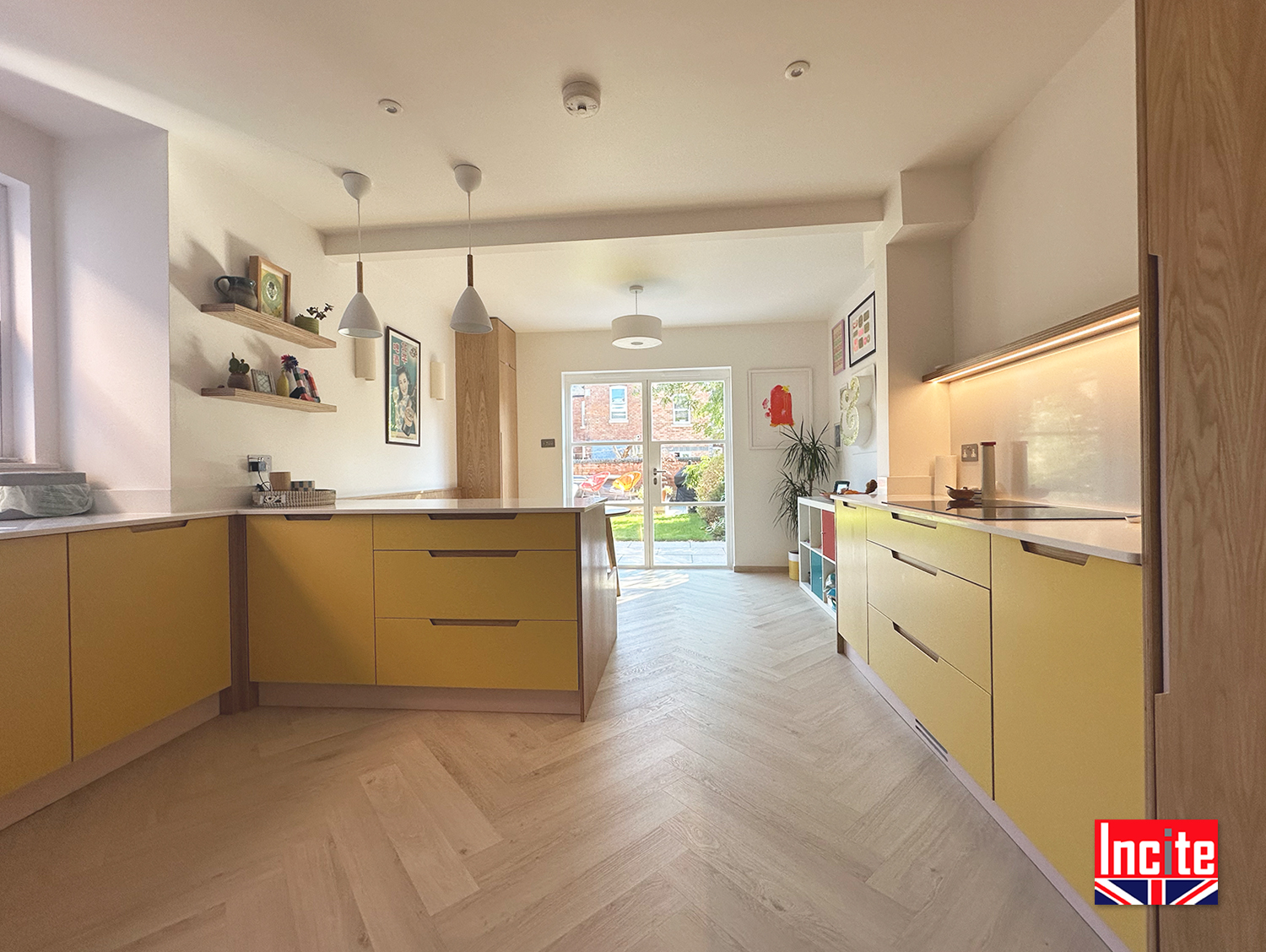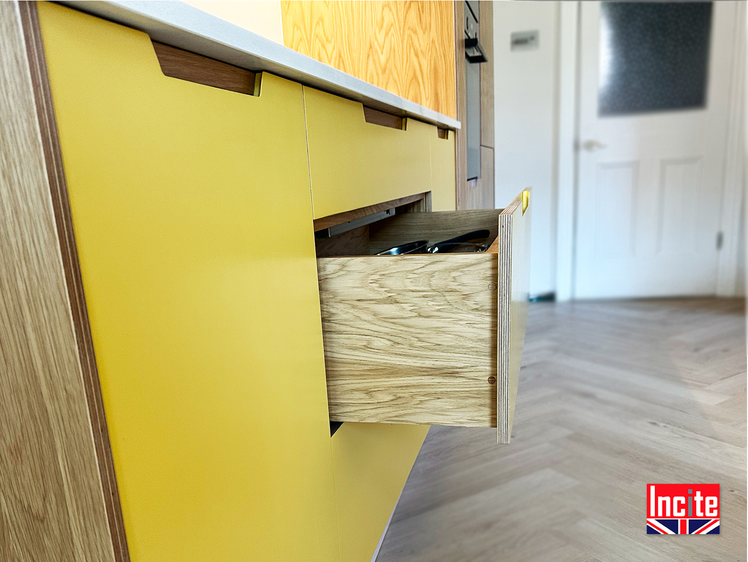 Contemporary Painted Yellow Oak Kitchen custom made by Incite Interiors Derbyshire